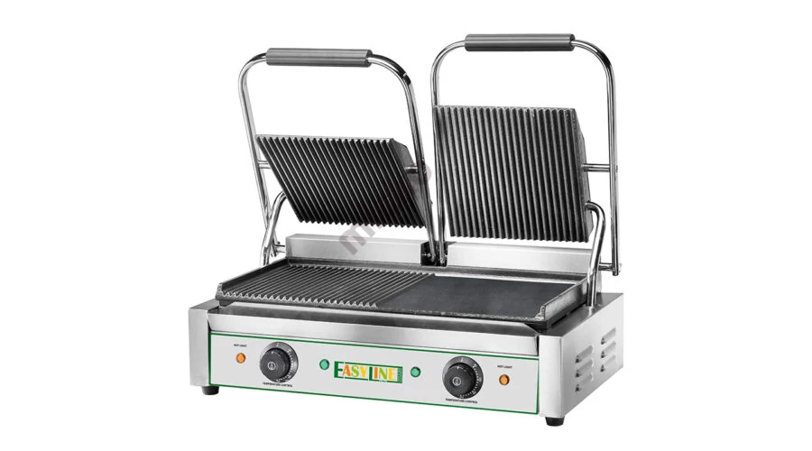 Egyéb tulajdonság | alul bordázott és sima, felül bordázott 1/2-1/2 arányban osztott öntöttvas sütőfelület (34 × 23 cm) |